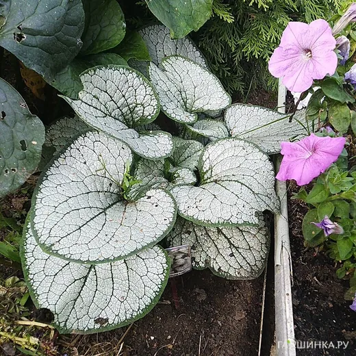 Бруннера приехала в марте. На корешке были только почки. Не посадила еще в грунт, а она за месяц успела зацвести. Цвет листьев пока больше зеленый, но намечается переход к серебристому.