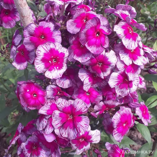 Очень красивый флокс. Расцветка такая необычная, в серединке темная звезда остается неизменной, а по мере цветения появляется и постепенно усиливается серебристая штриховка, которая все время меняется. Люблю все флоксы, но этот у меня самый любимый.