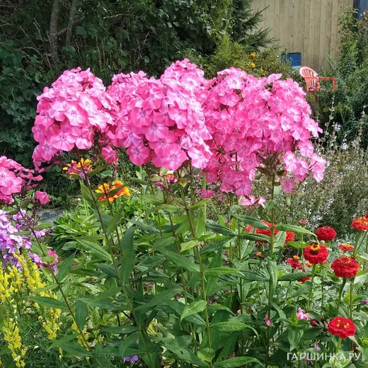 Флокс Земляничное суфле - Лососевый, с особым земляничным оттенком, и пурпурным колечком. Соцветие плотное, овально-коническое. Высота взрослого растения 100 см. Цветки в диаметре до 4 см. Цветение июль-август.