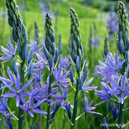 Камассия Блю Мелоди - луковичный многолетник из семейства Спаржевые (Asparagaceae), подсемейство Агавовые (Agavoideae). Травянистое растение в природе встречается на лугах, у берегов рек, в горах Северной Америки и Канады. Часто встречается в многолетних садовых рокариях и альпинариях, хорошо смотрится у водоемов, рядом с кустарниками и хвойными деревьями. Впервые камассия была ввезена на территорию Европы в начале 19 века.