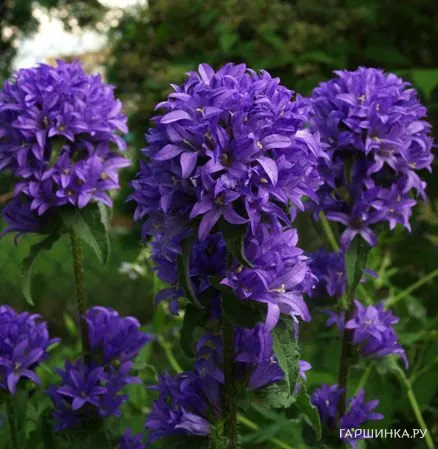 Колокольчик скученный Фрея - травянистое растение семейства Колокольчиковые. Высота взрослого растения 50 см. Прямые опушенные стебли, зубчатые, яйцевидно-продолговатые или яйцевидно-ланцетные листья с мягкими волосками. Цветки сиренево-фиолетовые до 2 см в диаметре, в верхушечных и пазушных головчатых соцветиях их собирается до 20 штук.
